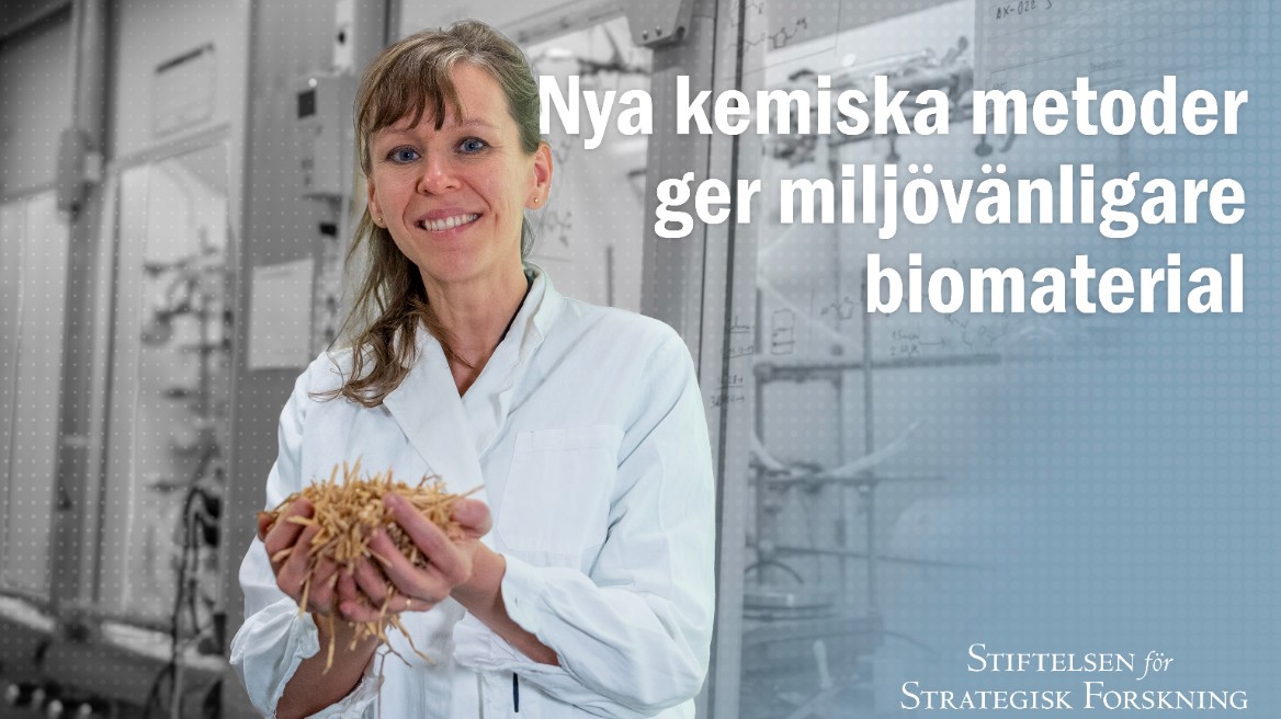 Helena Lundberg och hennes forskargrupp vid KTH, utvecklar miljövänliga processer för att ta till vara på biobaserade restströmmar från exempelvis jordbruk och skogsbruk. Tanken är att ersätta fossil råvara med förnybar biomassa för produktion av kemiska produkter. Se filmen med en av SSF:s Framtidens Forskningsledare!